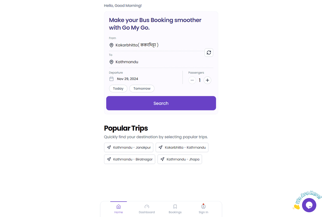 Go My Go is a user-friendly bus ticket booking platform designed to simplify travel planning. It solves the problem of manual ticket reservations by enabling users to book seats online with real-time seat availability and instant confirmation.